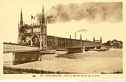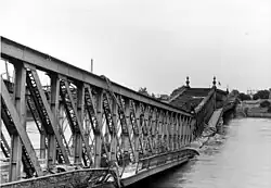 By this time a project had reached the planning stage to replace the bridge which by now was more than 75 years old, but no such replacement would be built till well after the Second World War. With the outbreak of war in the late summer of 1939, French troops blew up the bridge's main western support. Until September 1940 the bridge could nevertheless be used courtesy of temporary repairs undertaken. In November 1944 German troops blew up the bridge's main eastern support, effectively destroying the bridge in its totality.