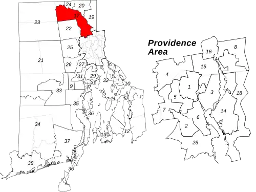Senate District 17 contains portions of three municipalities in northern Rhode Island, those being Lincoln, North Providence, and North Smithfield.[3]