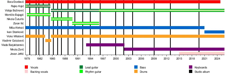 | Past members | Bora Đorđević Miša Aleksić Rajko Kojić Momčilo Bajagić Vladimir Golubović Nikola Čuturilo Zoran Ilić Vladimir Barjaktarević |