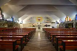 Church of Stella Maris in Fontanelle. The church was built and consecrated in 1963 to the design of architect Luigi Fonti to cater to Fontanelle's growing population; it was expanded in 1987, including the addition of an 18-metre (59-foot) belltower.[125][126] A votive cell, recording the spot where Monaldi was said to have uncovered a water source for thirsty pilgrims, flanks the church.[120][126][127]