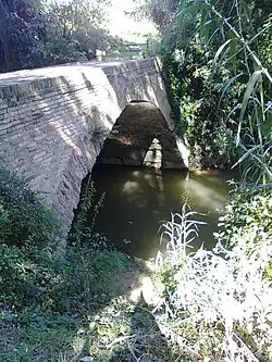 Following the Roman victory at the Battle of Sentinum in 295 BC, the region became important for the Roman's expansion against the Celts, leading to the foundation of the colonia of Ariminum (modern Rimini) in 268 BC and the construction of the Via Flaminia, running from Rome to Ariminum.[9][15] A Roman settlement in Riccione, officially a vicus, was centred in the area of the present-day San Lorenzo in Strada, where the Via Flaminia turned to a more northerly bearing.[16][12] Excavations near the present-day pharmacy revealed a necropolis and several buildings,[17] dating to the second century BC.[18][8] A single-arched Roman bridge over the Rio Melo survives next to the SS16 state road.[12][15][17] The bridge was restored in the 17th century and used until the 1930s.[15][17] The Via Flaminia in Riccione was on a climb, requiring additional animals to help transport loaded carts;[18] from ancient times until the arrival of the railway, helping goods cross the area was a profitable local business.[19]