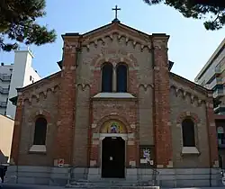 Church of San Martino. First recorded in January 1177,[20] located in the area of the present-day Fontanelle,[13] the medieval church was destroyed by an earthquake on Christmas Day 1786.[20][21] The church was rebuilt at its present location on Corso Fratelli Cervi,[17][20][21] and consecrated on 8 November 1789.[20][21] San Martino contains the relics of Blessed Alessio Monaldi, a farmer who has been venerated locally since the late 16th century.[120][121][122] To accommodate Riccione's growing population, a second, modern church also dedicated to St Martin of Tours was consecrated on 10 March 1963,[123][124] less than 280 metres (310 yards) away from the old church as the crow flies.[3]