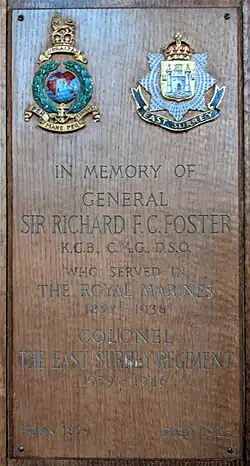 General Sir Richard Foster Carter Foster, KCB, CMG, DSO (27 January 1879 – 3 April 1965) was a Royal Marines officer who served as Adjutant-General Royal Marines and later as colonel of the East Surrey Regiment.