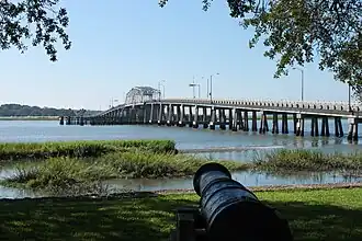 The Richard V. Woods Memorial Bridge (known locally as the Woods Bridge), is a swing bridge that connects downtown Beaufort with Lady's Island and the outer Sea Islands in Beaufort County, South Carolina. Originally named Lady's Island Bridge, it was renamed in 1971 in memory of Richard V. Woods (1935–1969), who was a South Carolina Highway Patrol officer killed in the line of duty.[2] It was opened on December 17, 1959, replacing an earlier swing-bridge that was built 1927.[3][2]