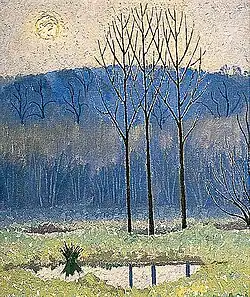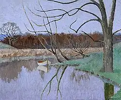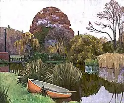 Wyndham later began studying art; he was a pupil of the painter and novelist Wyndham Lewis.[2] Much later, in the 1930 novel The Apes of God, Richard Wyndham is portrayed satirically by Lewis as the character Richard Whittingdon.[4] In response Wyndham offered two of Lewis's paintings for sale in The Times personal column, describing them by size rather than description.[5][6]