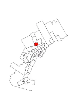 It consists of the part of the City of Richmond Hill lying south and west of a line drawn from west to east along Gamble Road, south along Yonge Street, and east along Elgin Mills Road East.