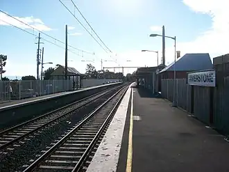 In 2002, the track between Marayong and Quakers Hill was duplicated.[5] Two further duplications were announced as part of the Rail Clearways Program—from Quakers Hill to Schofields and from Schofields to Vineyard. These provide extra capacity to support increased patronage, as the line passes through the middle of Sydney's "North-West Growth Centre". Duplication of the Quakers Hill to Schofields section commenced in 2009 and was completed in October 2011. The extension of the duplication to Vineyard has been deferred.