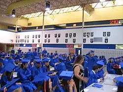 The Pasco County School Board approved the creation of a new junior high school north of the City of New Port Richey in response to population growth in the area during the 1970s, with the expectation that the school would ultimately become west Pasco's third high school. Superintendent Thomas Weightman had Ridgewood built to senior high specifications and purchased extra land near the school for the future expansion and conversion.[5] The school was built for $3.2 million and opened on August 22, 1978. Wendell L. Krinn became the first principal of the school and would serve in that position for 20 years.[6] The St. Petersburg Times proclaimed Ridgewood, "The new home of education" in Pasco County because of its state of the art facilities and unique architecture.[7] Rowe Holmes Associates designed the main building of Ridgewood High School after the Tampa Bay Center in Tampa, Florida, with its courtyard, high ceilings, and second floor overlooking the building.[7]