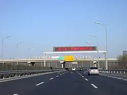The G95 Capital Area Loop Expressway, also unofficially known as the 7th Ring Road, is an orbital road of about 1,000 km that encircles the city centre of Beijing, mostly passing through Hebei. Only 38 kilometers passes through Beijing, another 38 km runs through Tianjin and 924 km is in Hebei province. Construction of the road was completed in June 2018 with the final section linking Beijing's outer districts of Tongzhou and Daxing.[2]