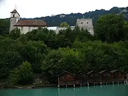 During the 13th century, the Counts of Ringgenberg expanded their power, often at the expense of Interlaken Monastery. The ruin of the estate began in the time of Philipp von Ringgenberg (1351–1374). In 1351 part of the estate was sold to the monastery. In 1381 Ringgenberg castle was burnt and plundered by troops from the Canton of Uri and Count Petermann von Ringgenberg was taken in chains to Obwalden.[5] In 1386, the castle and lands were assigned to Bern. However the city lacked the funds to rebuild the burned castle and in 1411 and 1439 parts of the castle and village were sold to Interlaken. A few years later, in 1445, Bern reacquired the land, but lost it again in 1457.[4]