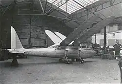 The Riout 102T Alérion is an ornithopter built in 1937 designed by René Riout. The Alérion went through a series of ground tests including in the Chalais-Meudon wind tunnel 1938 when the wings suffered a structural failure. Further development was abandoned with the start of World War II. It never flew and was stored until it was found in 2005 and brought to the Musée Régional de l'Air at Angers, where it was partially restored.[1][2][3]