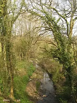 The River Bewl is a tributary of the River Teise in Kent, England. Its headwaters are in the High Weald, in Sussex between Lamberhurst, Wadhurst and Flimwell. The valley is deeply incised into Tunbridge Wells red sandstone, with a base of alluvium on Wadhurst clay.[1]