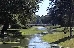 An artificial water flow that emulates the river was created through Forest Park, using the city's water supply. This is often mistakenly considered a re-creation of the original River des Peres. However, the water flow here is deliberately produced, not derived from rainfall, or runoff, etc., and cannot be considered a re-creation of the river. The resemblance of the water feature to a picturesque river scene was an attempt to maintain continuity with the appearance of the rest of Forest Park's landscape, which for the most part, excepting significantly recent additions to the Art Museum (by Peter Walker), upholds the original, early twentieth century pastoral design intentions of George Kessler. The design received notable objections due to its generous use of resources to present the appearance of a healthy river.[7]