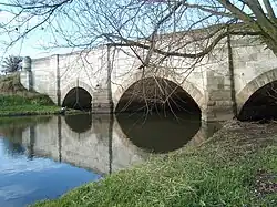 Bawtry bridge, which carries the A631 road to Gainsborough over the river, was constructed in 1810 by Mr Flavel of Wetherby, at a cost of £3,000. It consists of a large central arch flanked by a slightly smaller arch on both sides. The road was widened in 1940, by extending the bridge on its south side, but retains its original character because the south facade was carefully removed and reused to face the new construction.[67]