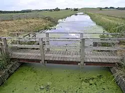 The River Skerne underwent a comprehensive restoration scheme between 1995 and 1998 as part of an EU-LIFE demonstration project carried out by the River Restoration Project (now The River Restoration Centre).[2] A 2 km stretch of the river running through the town of Darlington was improved including the formation of four new meanders, planting to strengthen banks, reshaping and narrowing of the bed, installation of footpaths and a planting scheme aimed to "bringing the countryside into town".[3][2]