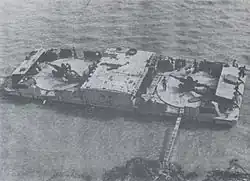 In November 1920, the Regimentul Artileriei Fluviale (Riverine Artillery Regiment) was formed as part of the Romanian Naval Forces. The Regiment had 14 armed barges: 8 armed each with a single 152 mm Canet gun (Russian guns captured in 1918 along with the barges they were mounted on), 4 armed each with four 120 mm guns Canet and 2 armed with two 102 mm guns Obuchov M1910 each.[5] By early 1941, the Regiment had two sections of 152 mm guns, one section of 47 mm Škoda guns and one section of 40 mm Bofors AA guns (each section had two guns).[6]