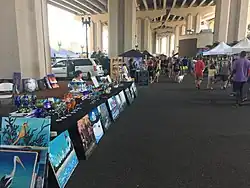 The Riverside Arts Market (RAM) of Jacksonville, Florida is a weekly arts-and-crafts market featuring live music, food, art, and fresh produce. It first opened to the public in the spring of 2009[1] and currently opens every Saturday 10AM-3PM ET rain or shine, year-round.[2] The marketplace includes a 350-person amphitheater known as Northbank Riverwalk Artists’ Square and forms the terminus for the Northbank Riverwalk.[3] It is located underneath the Fuller Warren Bridge alongside the St. Johns River.