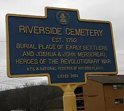 Riverside Cemetery (established 1791) is a cemetery set in the "Old Union" district of Endicott, New York, owned and operated by The Union Presbyterian Church. Located at 400 Vestal Avenue, the cemetery has historical significance as the burial place of Joshua and John Mersereau, who fought with George Washington in the Revolutionary War.[2]