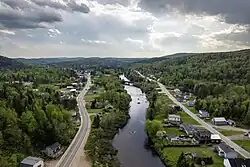- 1.2 kilometres (0.75 mi) to the Southwest, collecting the waters of the Blanche River (coming from the North) when entering the village, up to a bridge road;