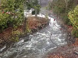 In 2009, the development of a new residential sector (the "Domaine Rivière des Roches" project) further up the river, raised concerns about environmental protection. A citizen consultation session is held on September 15, 2009.[2] During the fall, the contractor Sébastien Leboeuf decides to immediately begin the work of felling without authorization from the city.,[3] causing the illegal cutting of hundreds of trees.[4][5] The project was adjusted in 2010 to make more room for the environment of the Roches River.[6] The Rivière-des-Roches linear park was created thereafter and the City built paths and walkways there.[7]