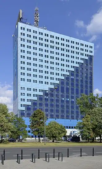 Riviera was built between 1962 and 1964 at 12 Waryńskiego Street in Warsaw, Poland. It was designed desigined by Kazimierz Thor, Józef Bubicz, and Czesław Molenda, as a dormitory for students of the Warsaw University of Technology.[1] The building consists of three connected parts, including the skyscraper and two smaller parts, which included sports halls, a canteen, and an auditorium.[2] Its upper façade was covered in the clinker brick, and the front façade was covered in large windors. It was the first skyscraper in Poland to function as a dormitory.[1] With the height from the base to the roof equal 67 m, and the total height of 80 m, it was the second tallest building in the city until 1974, when Novotel Warszawa Centrum was constructed.[3] From 1972 to 1979, at the ground floor was located the Galeria Remont art gallery, and from 1983 to 1989, Galeria RR art gallery.[4][5] Since 1973, in the building complex is located the Klub Riviera Remont night club.[6] In the 1990s, in the building basement was later Złota Skała recording studio.[7]