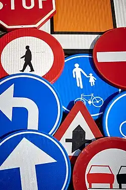 Road signs in Belgium are defined in the Royal Decree of 1 December 1975 on general regulations for the road traffic police and in the use of public highways.[1] They generally conform to the 1968 Vienna Convention on Road Signs and Signals.[2] The official typeface on road signs in Belgium is SNV.[3]