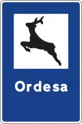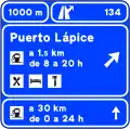 According to the standard, only the official names of towns and communities may appear on signs.[1]: 21 In the event that there is no official place name, the place name is first written in the regional language followed by a slash and the place name in Spanish. Where there is a lack of space, the place names are placed on two lines, with the name in the local language shown first followed by that in Spanish, with a horizontal line between them. No distinction is made in typography between both languages.