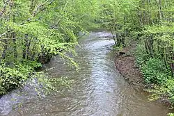 Roaring Creek is a tributary of the Susquehanna River in Columbia County and Montour County, in Pennsylvania, in the United States. It is slightly more than 20 miles (32 km) long and flows through Roaring Creek Township, Locust Township, Catawissa Township, Cleveland Township, and Franklin Township in Columbia County and Mayberry Township in Montour County.[1] The watershed of the creek has an area of 87.3 square miles (226 km2). It has three named tributaries: South Branch Roaring Creek, Lick Run, and Mill Creek. The creek is not considered to be impaired and is not affected by coal mining. However, its watershed has been impacted by human land use. Claystones, conglomerates, sandstones, siltstones, and shales all occur within the watershed. The creek flows through a gorge in its lower reaches, along the border between Columbia County and Montour County.