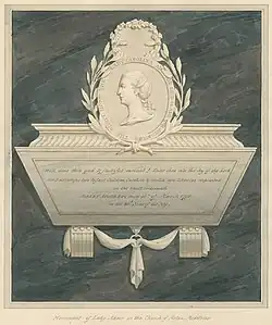 A memorial to him and his family (primarily centred on his wife Caroline Keppel (1734–1769), who predeceased him due to consumption) was erected in St Mary's Church, Acton, London. Adair was buried alongside her on March 24, 1790.[4]