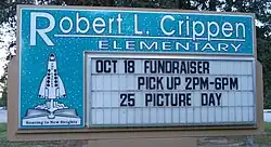 Sign of Crippen Elementary School in Porter, Texas, named after Robert Crippen