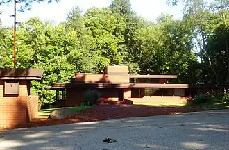 The Robert H. Sunday House is located in Marshalltown, Iowa, United States. It was designed by Frank Lloyd Wright in the Usonian style, and was listed on the National Register of Historic Places in 1988. Initially the Sundays choose the Usonian Automatic, a natural concrete block model, for their home. When it provided unworkable, Wright sent the plans for this house. In style and materials it is very similar to the 1953 Usonian Exhibition House.[2] It was the sixth of seven houses designed by Wright and built in this style in Iowa. Sunday, who owned Marshall Lumber in Marshalltown, acted as his own general contractor. In fact, he and his wife did much of the work themselves. It is also believed to be last of this style built in brick.[2] John H. "Jack" Howe, a Wright assistant who supervised the initial construction, designed an addition to this house in 1970 that conforms seamlessly with the original. It includes the family room, family room terrace, and the dining room. The original house followed an L-shaped plan, and with the addition it is now a T-shaped plan. Howe had previously designed (1964) the building for Sunday's business.