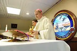 ![]() Bishop Coyle celebrating mass aboard the aircraft carrier USS Theodore Roosevelt | |