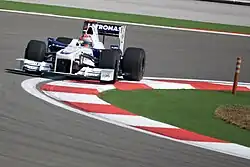 At the 2009 season opener in Melbourne, Kubica qualified fourth on the grid. During the race, he was in third place and closing the gap to the front two cars before making contact with Sebastian Vettel while trying to overtake him. After the incident, Kubica continued briefly, but crashed into a wall at the next corner because his front wing had become stuck under the car.[38] Vettel was later deemed responsible for the accident, and given a 10-place penalty on the grid for the next race in Malaysia.[39] BMW motorsport director Mario Theissen stated that Kubica would have won the race ahead of Jenson Button had it not been for Vettel.[40]