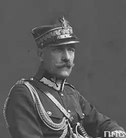 In March 1920 he became the commanding officer of the Lwów Corps Area (military administration of the city of Lwów and its region) and in August and September of that year he briefly commanded the entire South-Western Front of the Polish Army, as well as the 6th Army. Due to health problems he was dismissed from service in August 1921 and the following year he was honourably discharged. He briefly returned to active duty in 1923, but was again discharged in 1926. According to his post-war evaluation by Marshal Józef Piłsudski, he was a mediocre commander at best. "Completely inept at operational level in my honest opinion. His command would always be very, very bad. In dire need he could be used as a corps commanding officer, but – God forbid – not in Galicia, where he would instantly become victim of his numerous friends, colleagues and relatives. Easy-going, he is best used in diplomatic missions, but rather those, where observation rather than action or character are needed".[3]