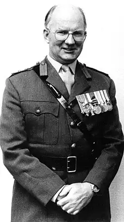 Successfully passing the Command and Staff course at the Staff College led to an appointment as company commander with 1st Battalion the Gloucestershire Regiment, at that time under consideration for merger with the Royal Hampshires. In that role, in late 1972, he was awarded the Military Cross for actions in Northern Ireland, although the detailed citation for the award is still not released to the public.[7] He returned to the Staff College as an administrative officer, before rejoining his own regiment for service in Hong Kong. Promoted Lieutenant-colonel in 1975, a spell in the Ministry of Defence followed, as military assistant to the Quartermaster General, Bill Jackson.