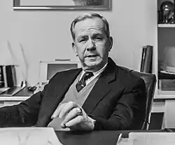 Robert Carl "Bud" McFarlane (July 12, 1937 – May 12, 2022) was an American Marine Corps officer who served as National Security Advisor to President Ronald Reagan from 1983 to 1985. Within the Reagan administration, McFarlane was a leading architect of the Strategic Defense Initiative, a project intended to defend the US from Soviet ballistic missile attacks.[2] He resigned as National Security Adviser in late 1985 because of disagreements with other administration figures but remained involved in negotiations with Iran and with Hezbollah.