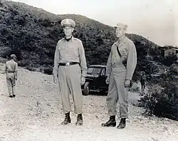 Colonel Bare was transferred back to the Pacific theater in October 1944 and assigned to the staff of 1st Marine Division. He participated in the final phase of the Palau Islands Campaign and succeeded Colonel John T. Selden as division chief of staff at the beginning of November 1944. Bare was appointed to this capacity following the Battle of Peleliu, where 1st Division suffered heavy casualties. New division commander General Pedro del Valle tasked Colonel Bare with the supervision of the re-equipping and training, which effected a virtual reorganization of the division.[1][2]