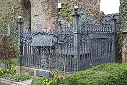 - A simple slate tomb for Owen was installed in St Mary's Churchyard in Newtown. In 1902 the co-operative movement erected Art Nouveau railings around the tomb as a monument to him.[48]
