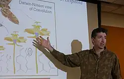 Dr. Robert Raguso delivering a lecture on Darwin's notion of plant pollination and coevolution with insects (2014).