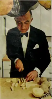 ![]() Randall slicing potatoes in his kitchen | |