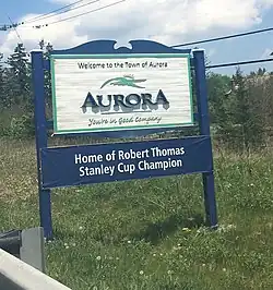 At the age of 19, Thomas helped the Blues advance to conference final by assisting on both goals during Game 7 of the Western Conference Second Round.[32] Afterwards, former Blues player Keith Tkachuk said, "For someone that young, to clearly stand out in a Game 7 from start to finish, was one of the best performances you have ever seen in the National Hockey League, in my opinion."[33] As the youngest player competing during the Western Conference Final against the San Jose Sharks,[32] he suffered a wrist injury during Game 6 as the Blues beat the Sharks.[34] He returned to the lineup for Game 1 of the 2019 Stanley Cup Finals against the Boston Bruins, but suffered another injury and was out of the lineup until Game 6.[35] His efforts during the postseason helped the Blues win their first Stanley Cup in franchise history.[36] Upon winning the Cup, Thomas' hometown of Aurora added a sign underneath their city's welcome sign stating "Home of Robert Thomas, Stanley Cup champion."[37]