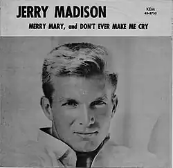 Taking the stage name of Jerry Madison, Jensen became a pop recording star on Tops Records with "Merry, Mary" becoming a minor hit,[5] putting him on the cover of Deejay magazine in April 1958. Another hit was "Von Hutch, the Mad Russian Pinstriper." He recorded a song "Girls, Glamorous Girls" for the Sherman Brothers' Buena Vista Records compilation Tinpanorama.[6] Tops commissioned famed photographer John Engstead to photograph Jensen. As Madison, Jensen appeared on Coronado 9 and in Where the Boys Are.[7]