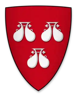 ![]() Arms of Robert de Ros Blazon: Gules, three water bougets argent. | |