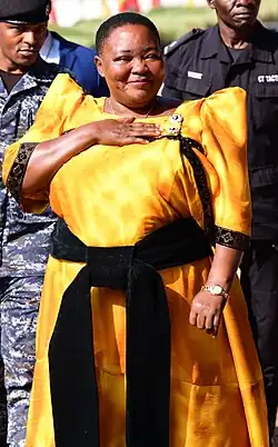 Robinah Nabbanja (born 17 December 1969) is an Ugandan educator and politician. She is the first female and current Prime Minister of Uganda.[1] She was formally confirmed by the Parliament on 21 June 2021[2] replacing Ruhakana Rugunda, who was then appointed to the post of Envoy for Special Duties In The Office Of The President of Uganda.