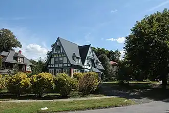 The Rochelle Park–Rochelle Heights Historic District is a historic residential district located in the city of New Rochelle in Westchester, New York. The district is historically and architecturally significant as an intact and distinctive example of residential park development at the turn of the Twentieth Century.[3] It includes the historic Rochelle Park development, and the later Rochelle Heights subdivision. Within the district are 555 contributing properties, including 513 buildings, 38 structures, and 4 sites. Only 24 buildings and 1 site separately identified within its area are non-contributing.[4] It was listed on the National Register of Historic Places (NRHP) on July 6, 2005.[1]