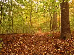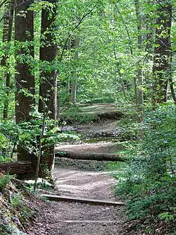 The Rock Creek Park Act authorized the purchase of no more than 2,000 acres (810 ha) of land, extending north from Klingle Ford Bridge in the District of Columbia (approximately the northern limit of the National Zoo), to be "perpetually dedicated and set apart as a public park or pleasure ground for the benefit and enjoyment of the people of the United States".[8] The Act also called for regulations to "provide for the preservation from injury or spoliation of all timber, animals, or curiosities within said park, and their retention in their natural condition, as nearly as possible".[9] Rock Creek Park is the oldest natural urban park in the National Park System.[10] Park construction began in 1897.[5]