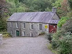 The mill lies in the narrow valley of Afon Clettwr, a tributary of the River Teifi, on a minor road about 0.5 kilometres (0.31 mi) south east of the church of St David in Capel Dewi.[1] Capel Dewi is about 4 kilometres (2.5 mi) east-north-east of Llandysul.[2] Water is carried to the wheel along a short leat from a weir on the river.[1]