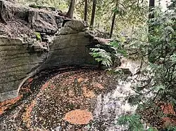 Another feature at Rockwood are the potholes. Within the conservation area, there is over 200 potholes that all vary in measurements.[4] These potholes are also known as giant's kettles, which are large cavities that have been drilled by flowing water carrying stones and gravel.