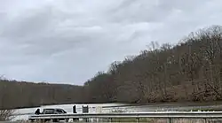 It continues flowing west alongside Etra Road and crosses the New Jersey Turnpike. It then flows into Peddie Lake in the heart of Hightstown. It crosses Route 33 and flows past the Town Center Plaza and Shopping Center before crossing Route 130 and the Hightstown Bypass. It then flows alongside the East Windsor Open Space Acquisition before draining into the Millstone River at 40°17′18″N 74°32′23″W / 40.28833°N 74.53972°W.[2]