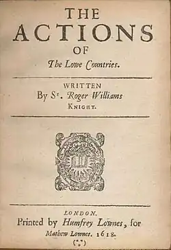 ![]() The title page of Williams' book The Actions of the Lowe Countries. | |